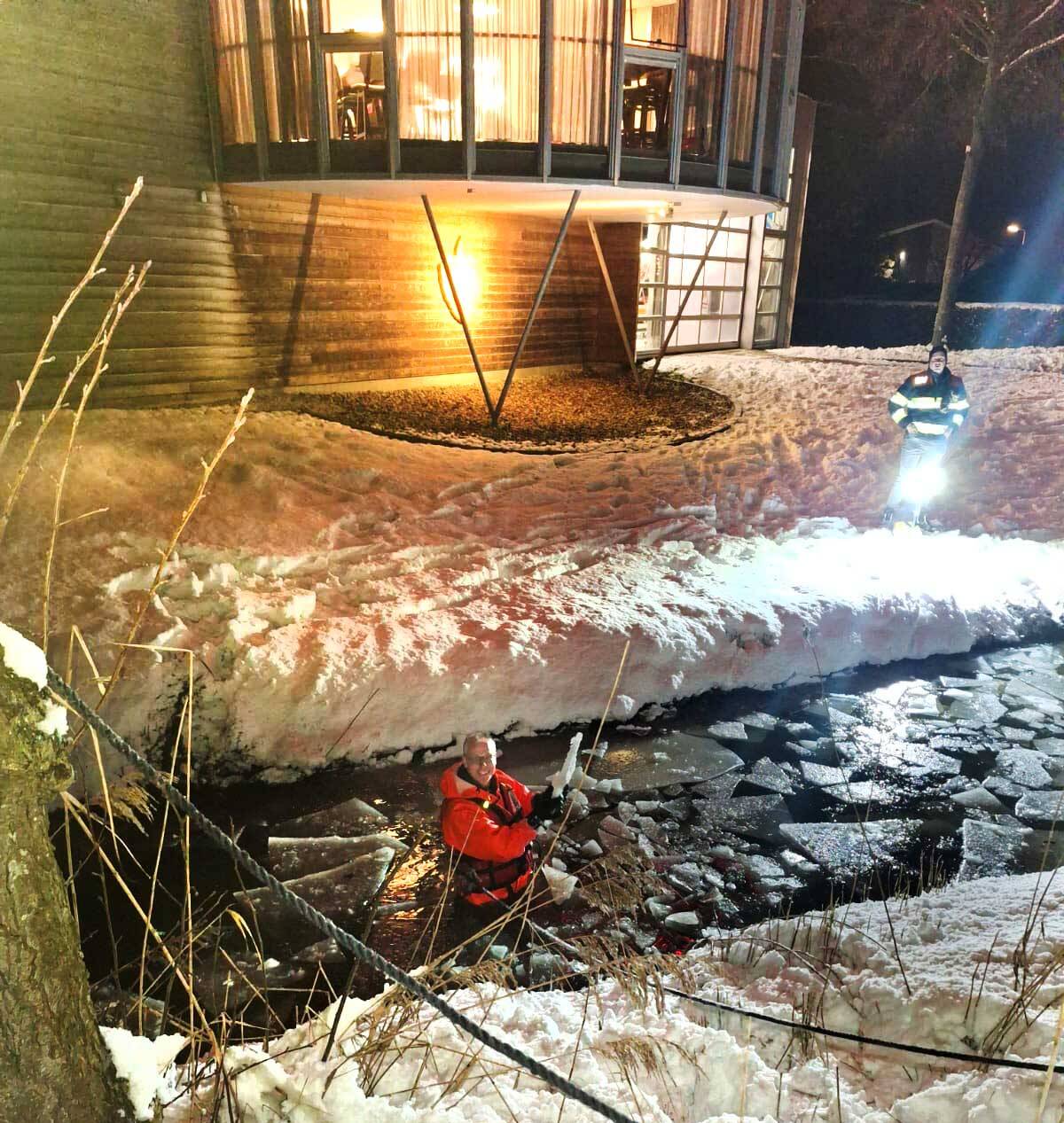 De vrijwilligers van Brandweer Akkrum hebben dinsdag 6 januari 2026 een bijzondere winteroefening gehouden in de sloot voor de kazerne aan de Feansterdyk. In het scenario haalden zij een onderkoeld persoon uit het water. Gehuld in waadpakken baanden de ploegleden zich een weg door het ijs.
