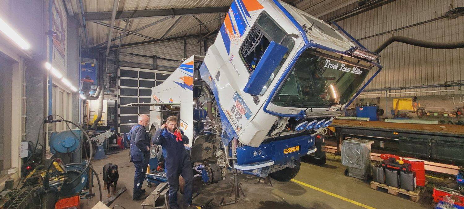 De beide Akkrumers zitten in Truck Team Müller van Anton Müller uit Holten, die ook is aangesloten bij het samenwerkingsverband European Truck- and TrailerCare, dat zo’n 35 werkplaatsen in heel Europa heeft. ,,It is begûn as hobbyprojekt. Yn 2016 hat er my entoesjast makke en ha’k earst yn in Toyota 4Runner riden, dy’t klearmakke wie foar Paris-Dakar. Ik hie doe noch nea yn in 4x4 riden en waard yn in race fan twatûzen kilometer sechsde fan de hûndert dielnimmers.’’