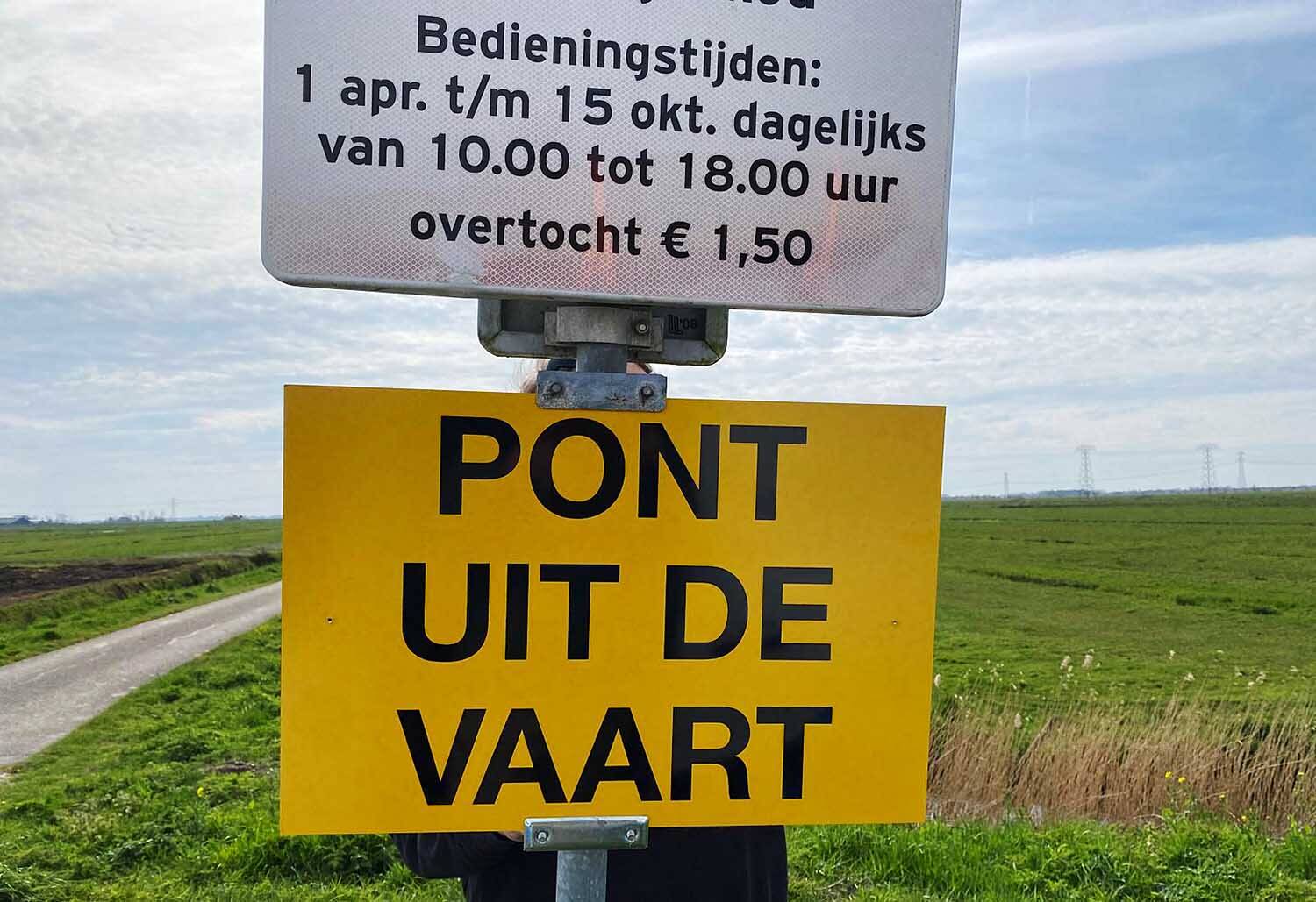 De gemeente De Fryske Marren heeft woensdagmiddag 15 mnaart 2026 een bord geplaatst bij de toegangsweg naar de pont om gebruikers te informeren over de situatie. Hoe lang de storing gaat duren, is nog onduidelijk.