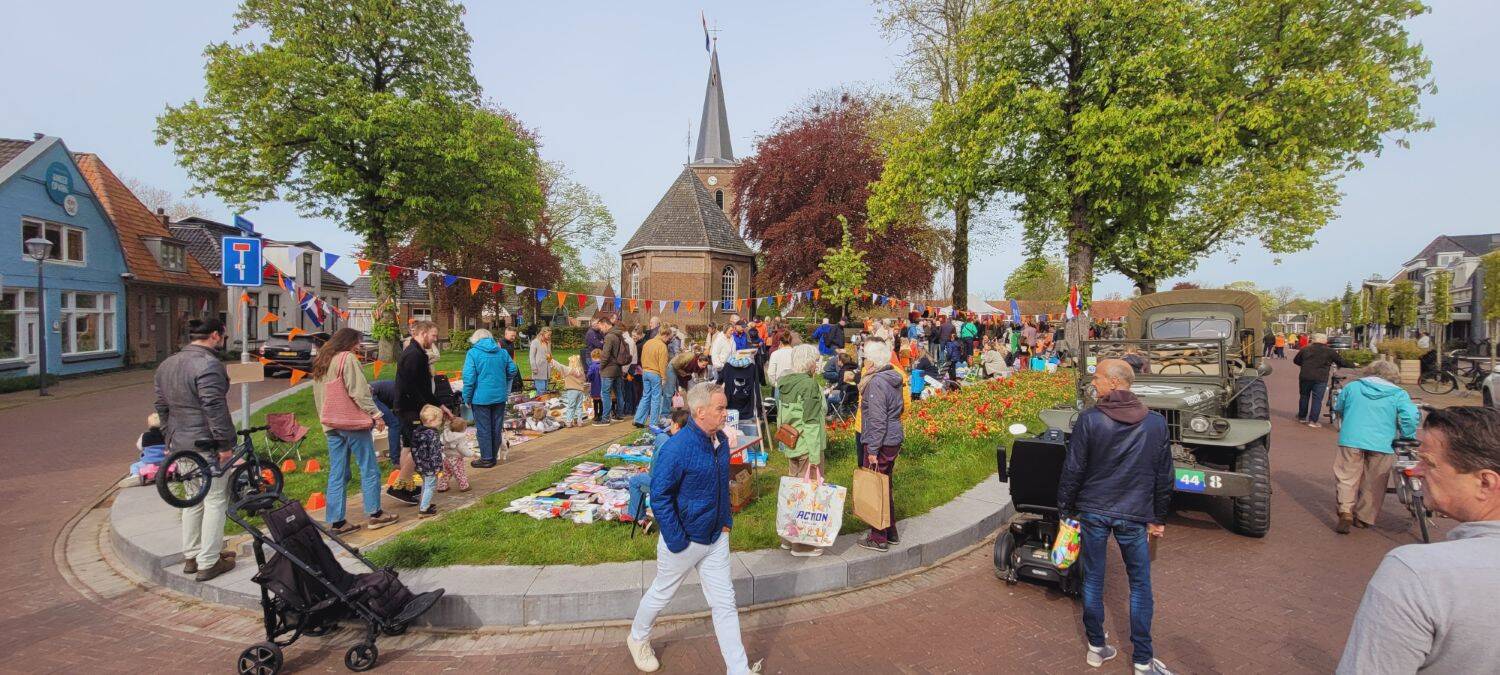 Een colonne van ruim dertig legervoertuigen uit de Tweede Wereldoorlog, een drukbezochte vrijmarkt en een nog karig Koningsdagzonnetje vormden maandag 27 april 2026 samen de aftrap van Koningsdag in Akkrum-Nes.