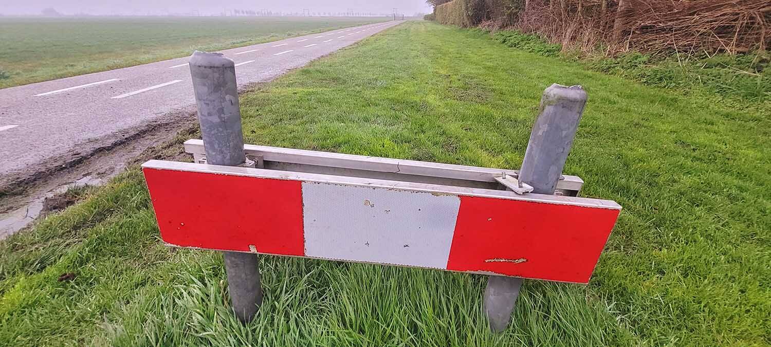 De restanten van de palen zitten nog met de verankering in de grond. Eén van de twee rood-witte schrikhekken hangt nog aan de palen. Buurtbewoners merkten de schade eveneens op en zagen dat de palen waren afgeknapt.