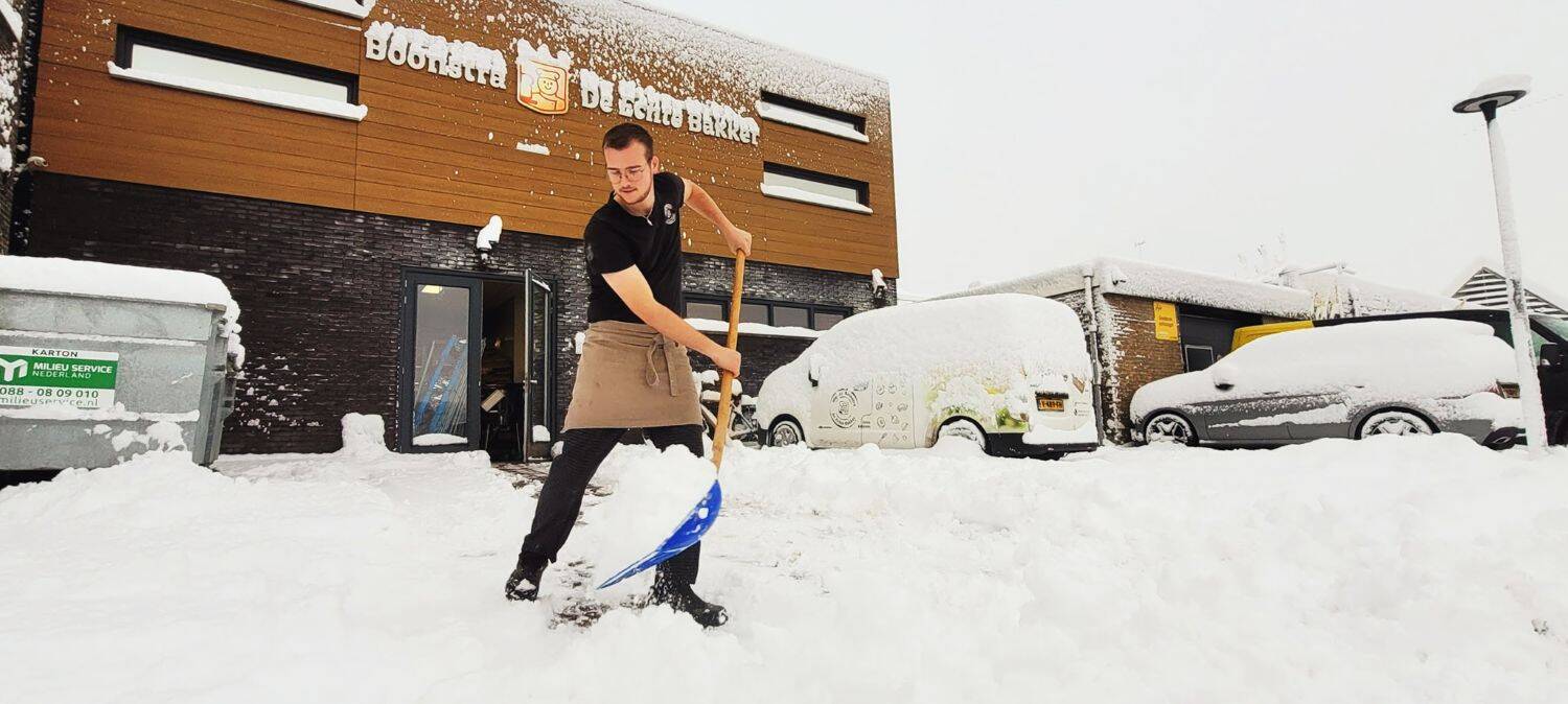 Na het dikke pak sneeuw van dertig centimeter kwam de verkoop van sneeuwschuivers en zakken zout mooi op gang. In het centrum van Akkrum sloegen klanten hun slag. Winkeliers hadden maandagochtend maandag 5 januari 2026 hun handen vol aan het sneeuwvrij maken van stoepen en straatjes. Ze deden dat met plezier, soms zelfs in hemdsmouwen, en strooiden waar nodig zout. De gemeente was al met een sneeuwschuiver en zoutstrooier langs geweest, waardoor het centrum redelijk begaanbaar was.